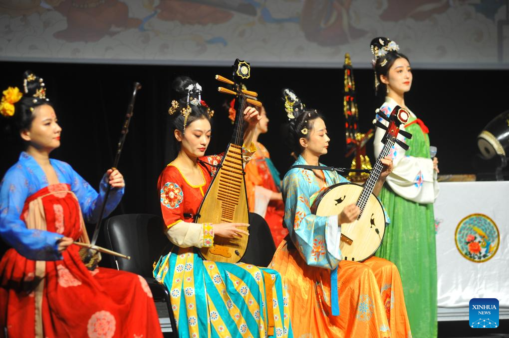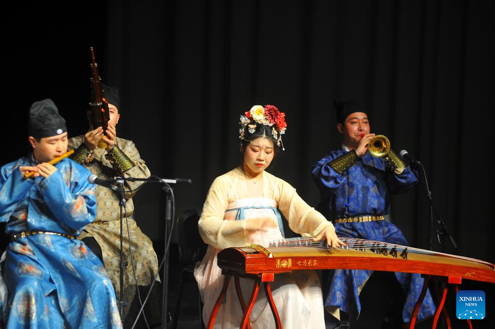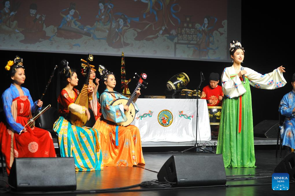 An art troupe from China's Shaanxi Province performs during a "Happy Chinese New Year" event held by the Chinese Embassy in Tunisia in Tunis, Tunisia, Jan. 20, 2024. (Photo by Adel Ezzine/Xinhua)