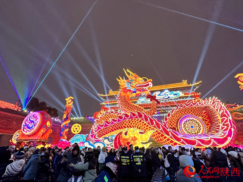 Embracing the Year of the Dragon, a magnificent dragon-themed lantern illuminates the ancient city wall of Xi'an, capital of northwest China's Shaanxi Province, during a vibrant lantern show to celebrate the upcoming Chinese Lunar New Year. (People's Daily Online/Bai Ge)