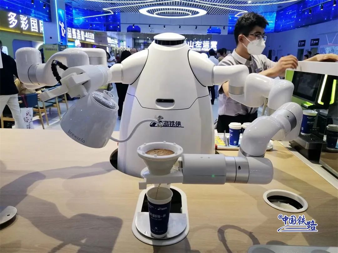 This photo shows a smart coffee machine at the Gaotiexia intelligent restaurant. [Photo/ Official WeChat account of CHINA RAILWAY]