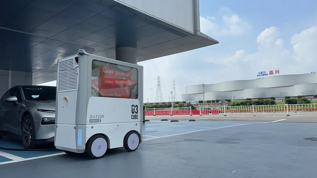At Jiaxing Service Area of Shanghai-Hangzhou Expressway, mobile charging robots have introduced unmanned driving technology, which can continuously charge 4 to 5 vehicles. The robot can locate vehicles and charge them.