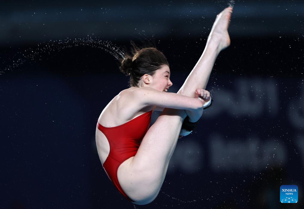 Andrea Spendolini Sirieix of Britain competes during the women's 10m platform final of diving at the World Aquatics Championships 2024 in Doha, Qatar, Feb. 5, 2024. (Xinhua/Luo Yuan)