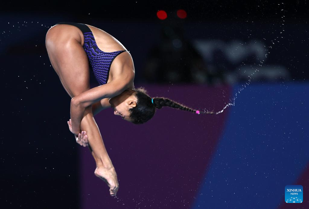 Gabriela Agundez Garcia of Mexico competes during the women's 10m platform final of diving at the World Aquatics Championships 2024 in Doha, Qatar, Feb. 5, 2024. (Xinhua/Luo Yuan)