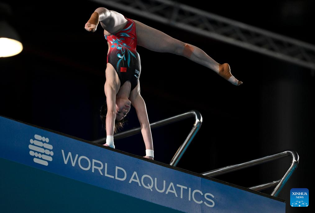 Chen Yuxi of China competes during the women's 10m platform final of diving at the World Aquatics Championships 2024 in Doha, Qatar, Feb. 5, 2024. (Xinhua/Xia Yifang)