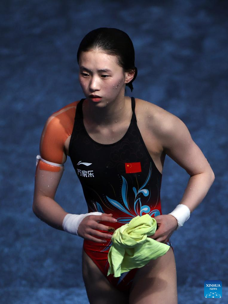 Chen Yuxi of China looks on during the women's 10m platform final of diving at the World Aquatics Championships 2024 in Doha, Qatar, Feb. 5, 2024. (Xinhua/Luo Yuan)