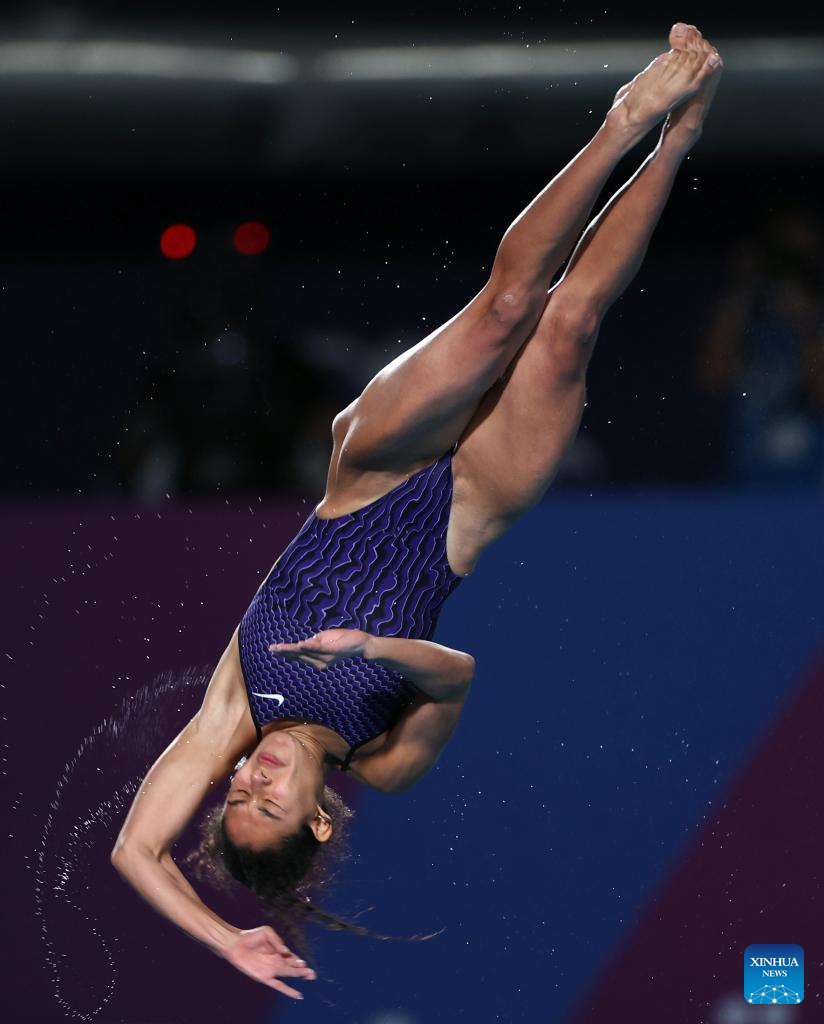 Lois Toulson of Britain competes during the women's 10m platform final of diving at the World Aquatics Championships 2024 in Doha, Qatar, Feb. 5, 2024. (Xinhua/Xia Yifang)