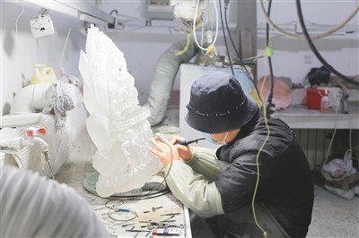 An artisan polishes a crystal product at a company in Donghai county, Lianyungang city, east China's Jiangsu Province. (People's Daily Overseas Edition/Shi Chang)