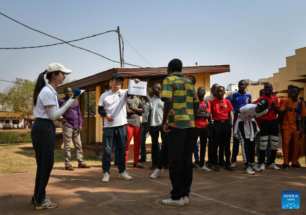 Students participate in a ring toss game during a cultural event at the Confucius Institute of Bangui University in Bangui, Central African Republic, Feb. 6, 2024. The Confucius Institute of Bangui University held a cultural event on Tuesday, celebrating the upcoming Chinese Lunar New Year, or the Spring Festival. (Xinhua/Han Xu)