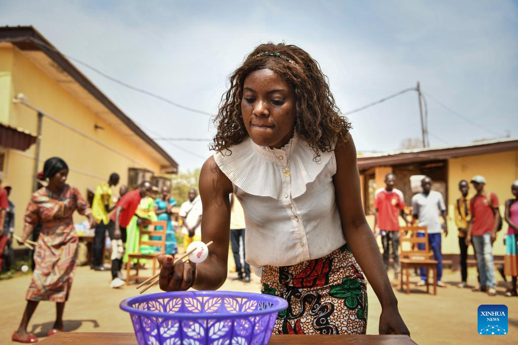 A student participates in a game, carrying Ping Pong with chopsticks, during a cultural event at the Confucius Institute of Bangui University in Bangui, Central African Republic, Feb. 6, 2024. The Confucius Institute of Bangui University held a cultural event on Tuesday, celebrating the upcoming Chinese Lunar New Year, or the Spring Festival. (Xinhua/Han Xu)
