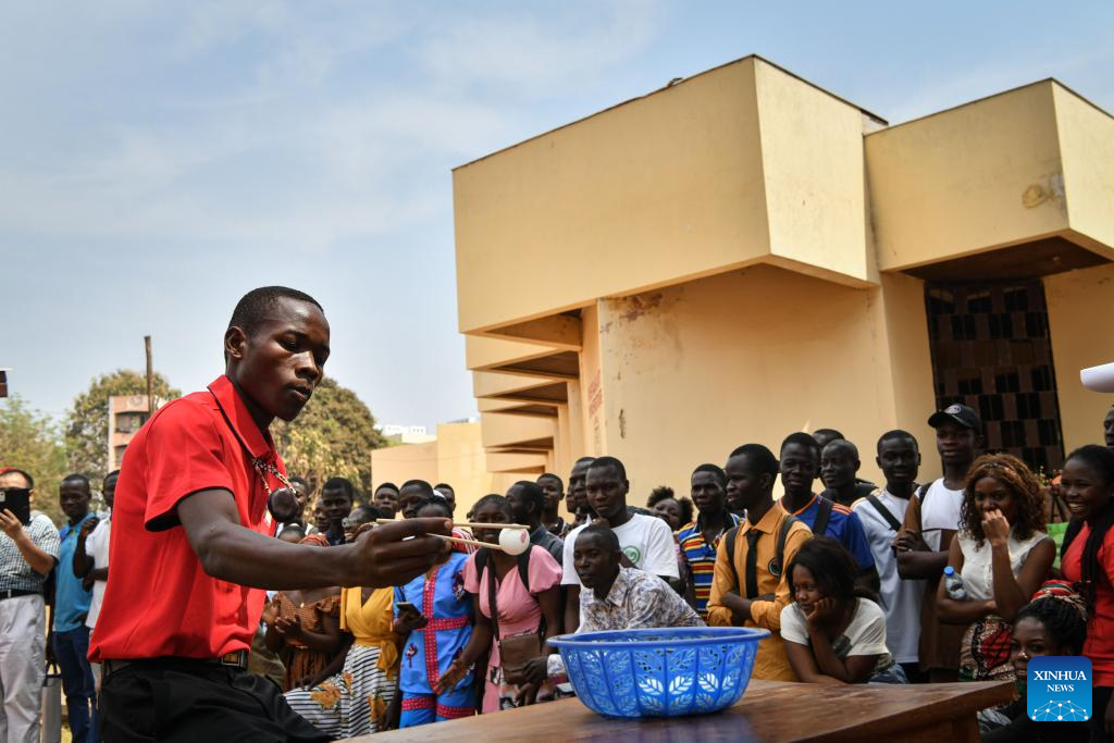 Students participate in a game, carrying Ping Pong with chopsticks, during a cultural event at the Confucius Institute of Bangui University in Bangui, Central African Republic, Feb. 6, 2024. The Confucius Institute of Bangui University held a cultural event on Tuesday, celebrating the upcoming Chinese Lunar New Year, or the Spring Festival. (Xinhua/Han Xu)