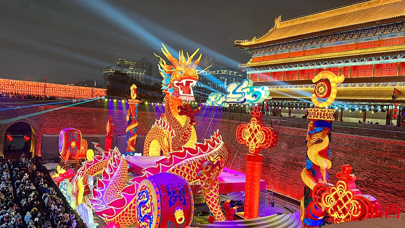 Embracing the Year of the Dragon, a magnificent dragon-themed lantern illuminates the ancient city wall of Xi'an, capital of northwest China's Shaanxi Province, during a vibrant lantern show to celebrate the upcoming Chinese Lunar New Year. (People's Daily Online/Bai Ge)