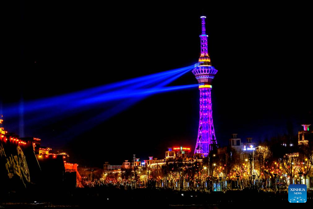 This photo shows a night view of the ancient city of Kashgar, northwest China's Xinjiang Uygur Autonomous Region, Feb. 4, 2024.