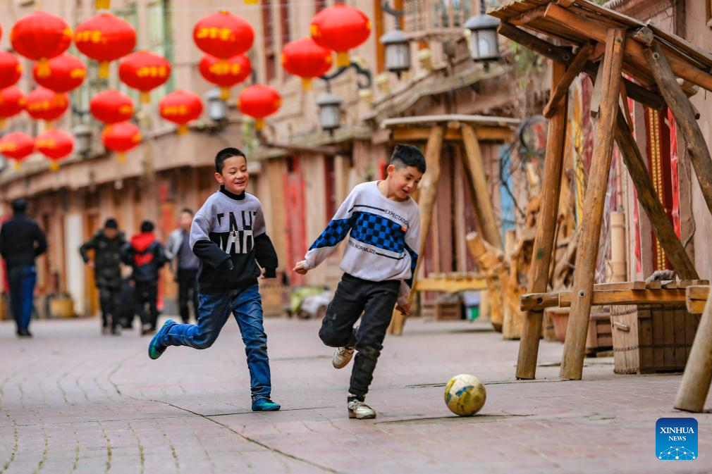 Children play in the ancient city of Kashgar, northwest China's Xinjiang Uygur Autonomous Region, Feb. 5, 2024.