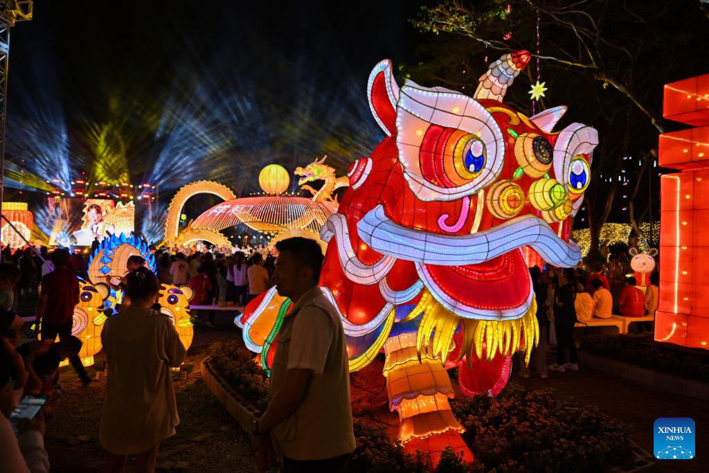 People visit a lantern show ahead of the Chinese Lunar New Year in Selangor state, Malaysia, Feb. 7, 2024. (Photo by Chong Voon Chung/Xinhua)
