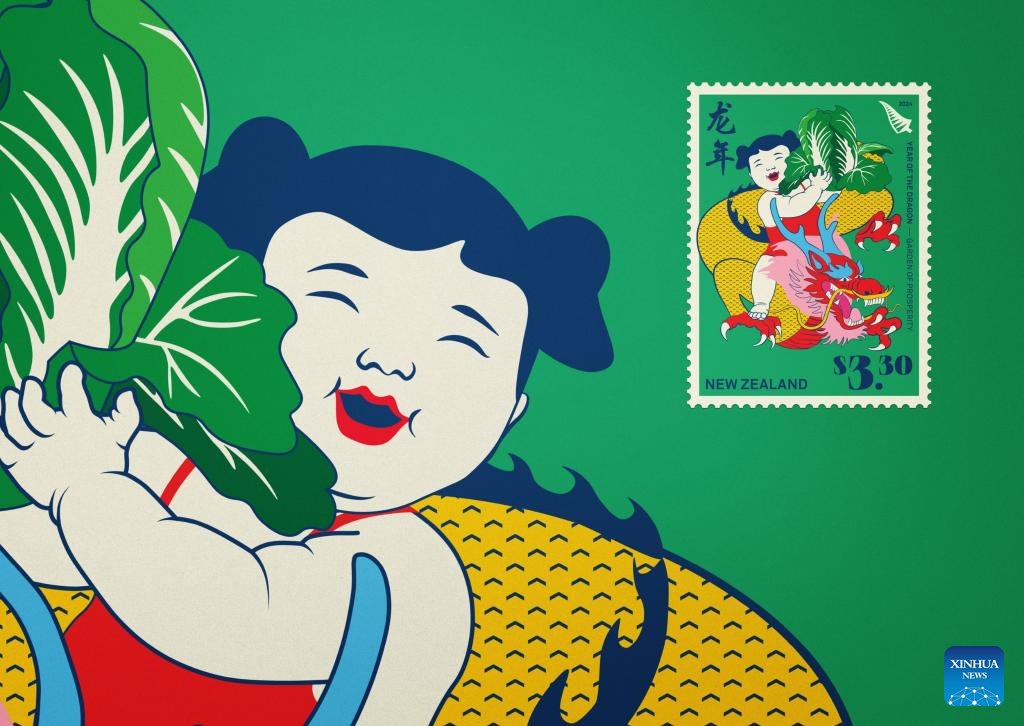 This picture shows the 2024 Year of the Dragon stamp published by New Zealand Post. (New Zealand Post/Handout via Xinhua)