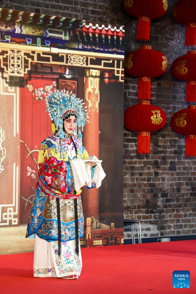 An artist performs Peking opera during a celebration of Chinese Spring Festival at the Irish Emigration Museum in Dublin, Ireland, on Feb. 15, 2024. On Thursday, a performance staged at the Irish Emigration Museum in Dublin, featuring Peking opera, martial arts, as well as traditional music and dance. (Xinhua)