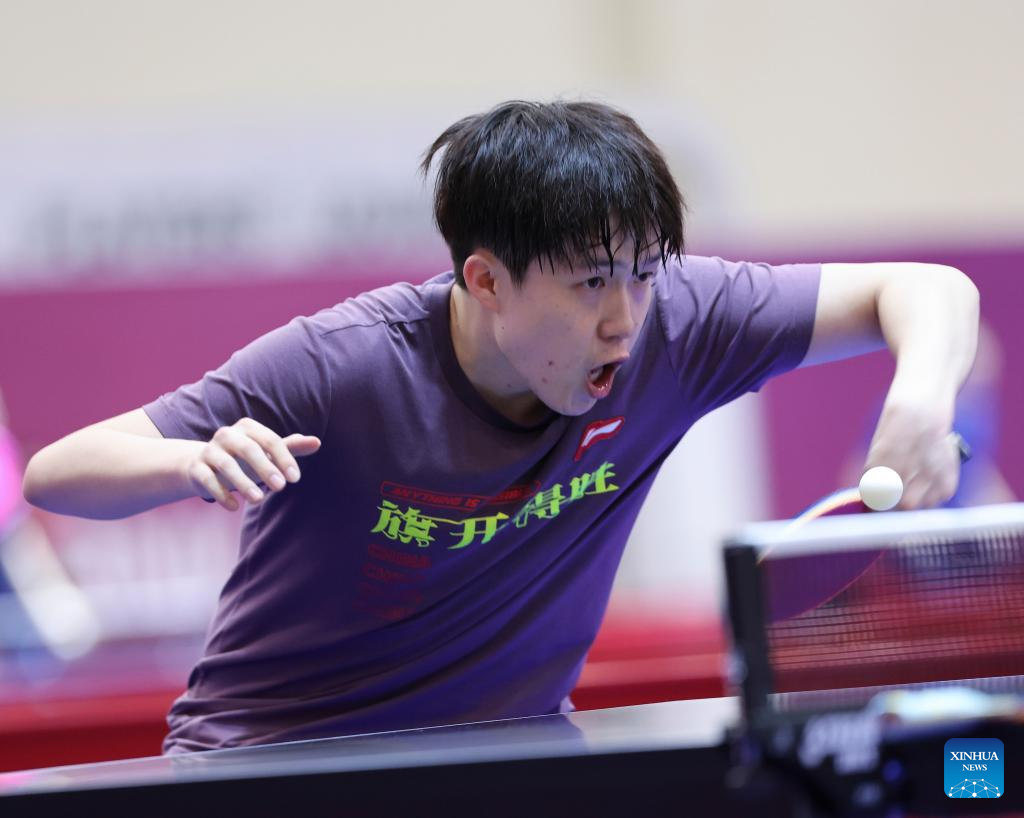 Team China's player Wang Chuqin attends a training session ahead of the ITTF World Team Table Tennis Championships Finals 2024 in Busan, South Korea, Feb. 15, 2024. The event will be staged here from Feb. 16 to 25. (Xinhua/Yao Qilin)
