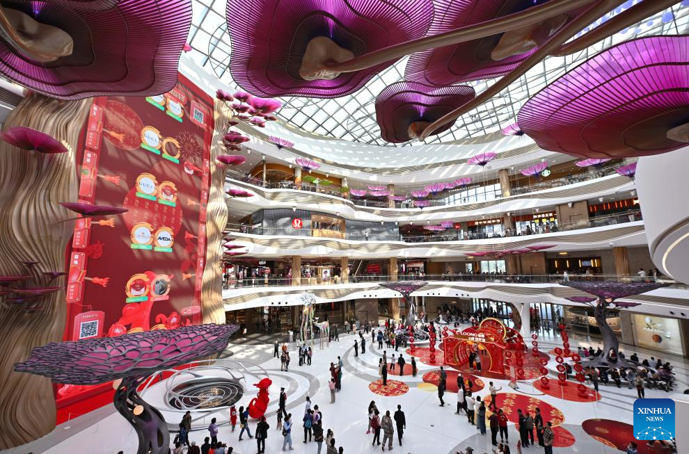 People shop at Haikou International Duty-Free Shopping Complex in Haikou, south China's Hainan Province, Feb. 11, 2024. (Xinhua/Guo Cheng)
