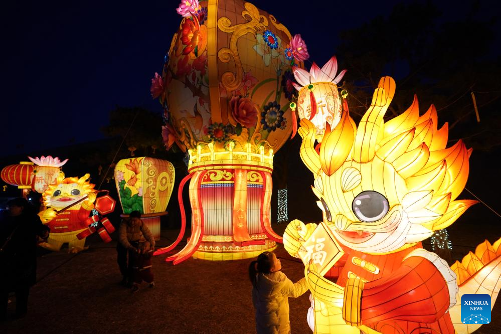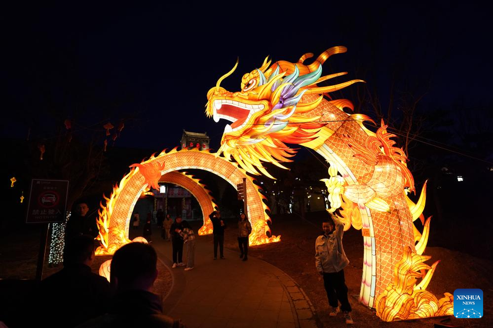 People visit a lantern show held in Taiyuan Ancient County scenic spot in Taiyuan, north China's Shanxi Province, Feb. 16, 2024. (Xinhua/Zhan Yan)