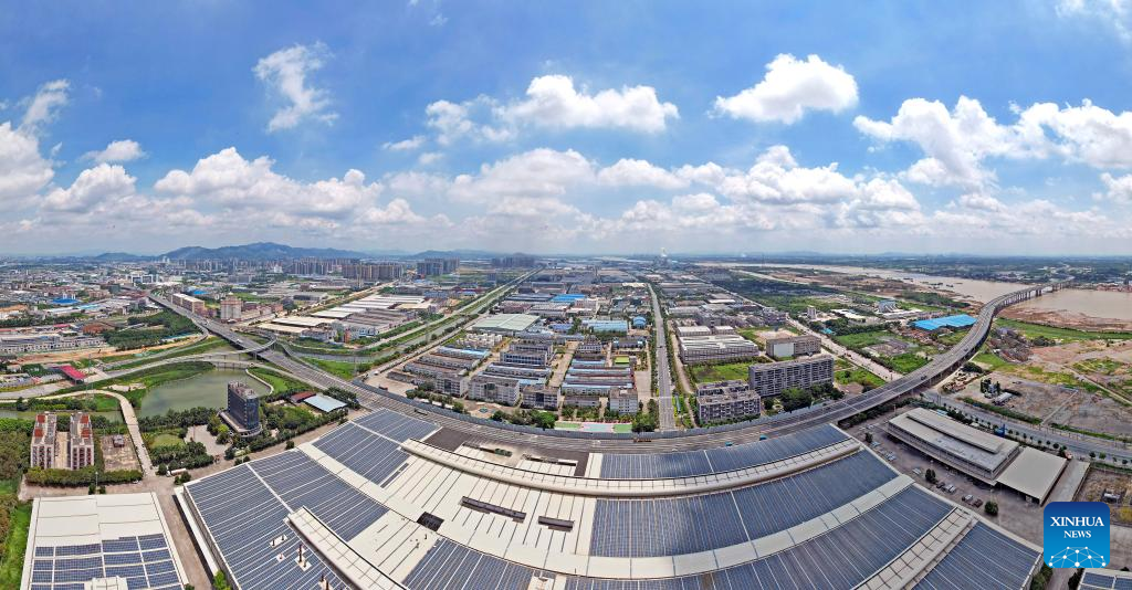 An aerial panoramic drone photo taken on July 22, 2023 shows a view of Zhaoqing High Technology Industry Development Zone in Zhaoqing, south China's Guangdong Province. (Photo by Liu Chunlin/Xinhua)