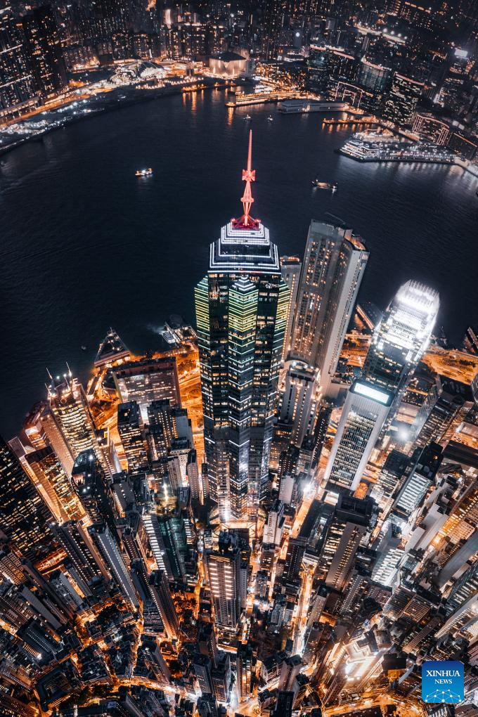 An aerial drone photo taken on March 27, 2019 shows the city view in Hong Kong, south China. (Photo by Qiu Huo/Xinhua)