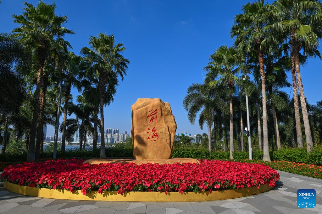A stone, inscribed with the word "Qianhai", is seen in Shenzhen, south China's Guangdong Province, Nov. 24, 2023. (Xinhua/Mao Siqian)
