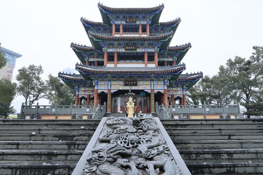 This photo taken on Feb. 7, 2024 shows a view of the Dragon King Temple Park in Wuhan, central China's Hubei Province. (Management center of the Dragon King Temple Park/Handout via Xinhua)