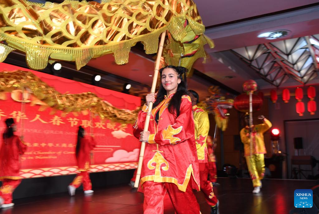 WINDHOEK, Feb. 17 (Xinhua) -- During the Chinese New Year, a group of passionate young Namibian dancers studying at the University of Namibia achieved a stunning feat by mastering the intricate art of dragon and lion dances, showcasing dedication, perseverance and cross-cultural exchange.