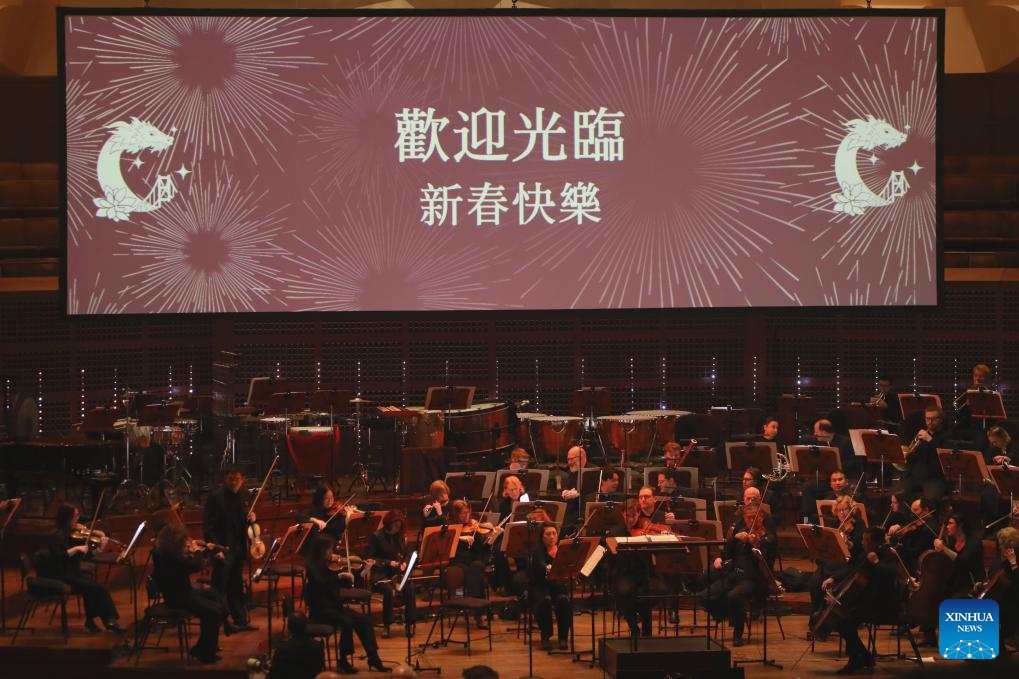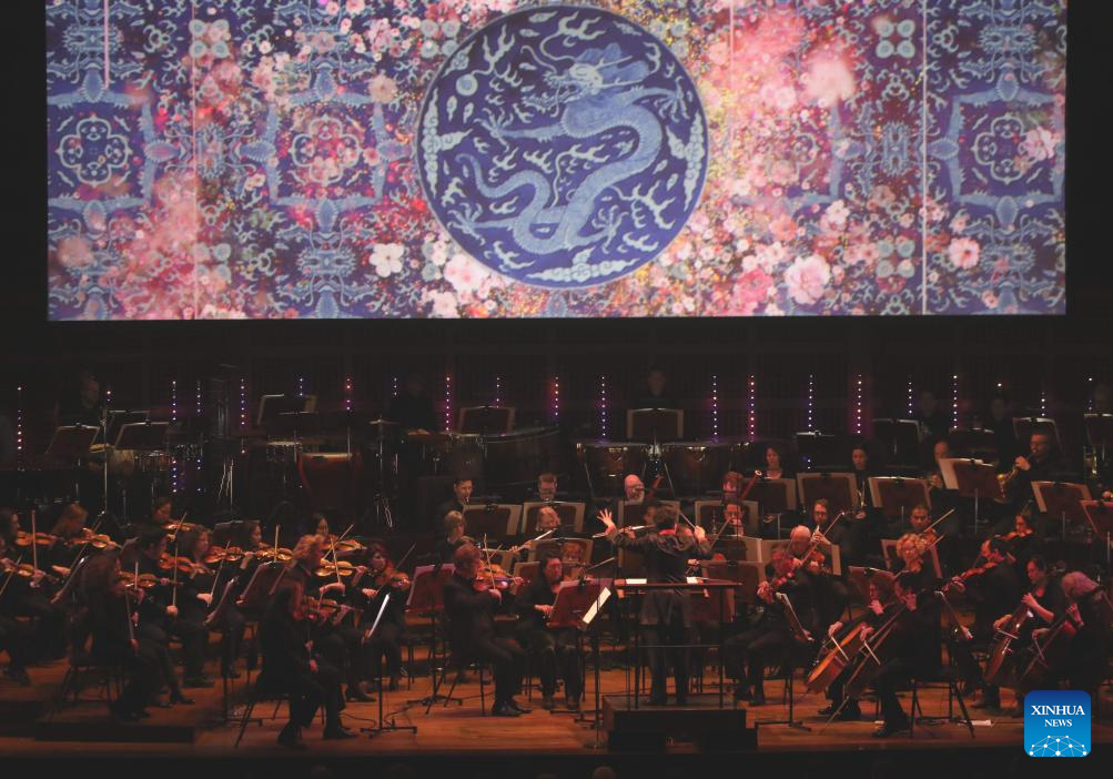 A concert in celebration of the Chinese Lunar New Year is staged by the San Francisco Symphony at Davies Symphony Hall in San Francisco, California, the United States, Feb. 17, 2024. (Photo by Liu Yilin/Xinhua)
