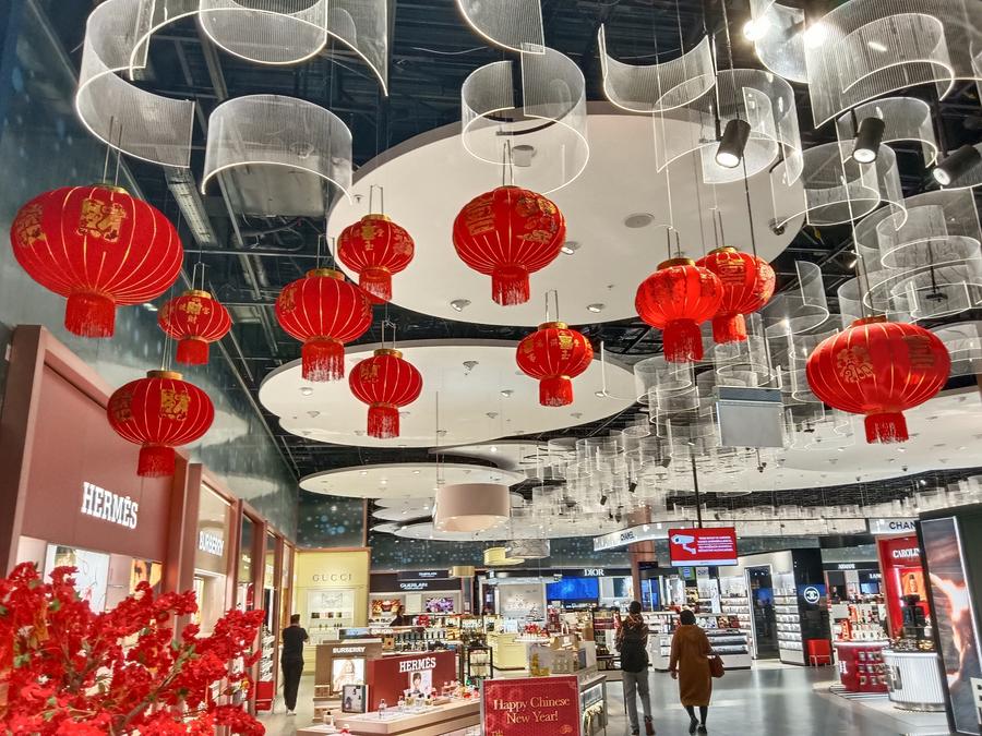 This photo taken on Feb. 3, 2024 shows red lanterns at Istanbul Airport in Istanbul, Türkiye. (Xinhua/Shadati)