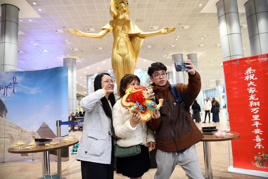 A flight attendant at the airport told Xinhua that with the onset of the Spring Festival holiday, flights to Cairo have been operating at near full capacity.