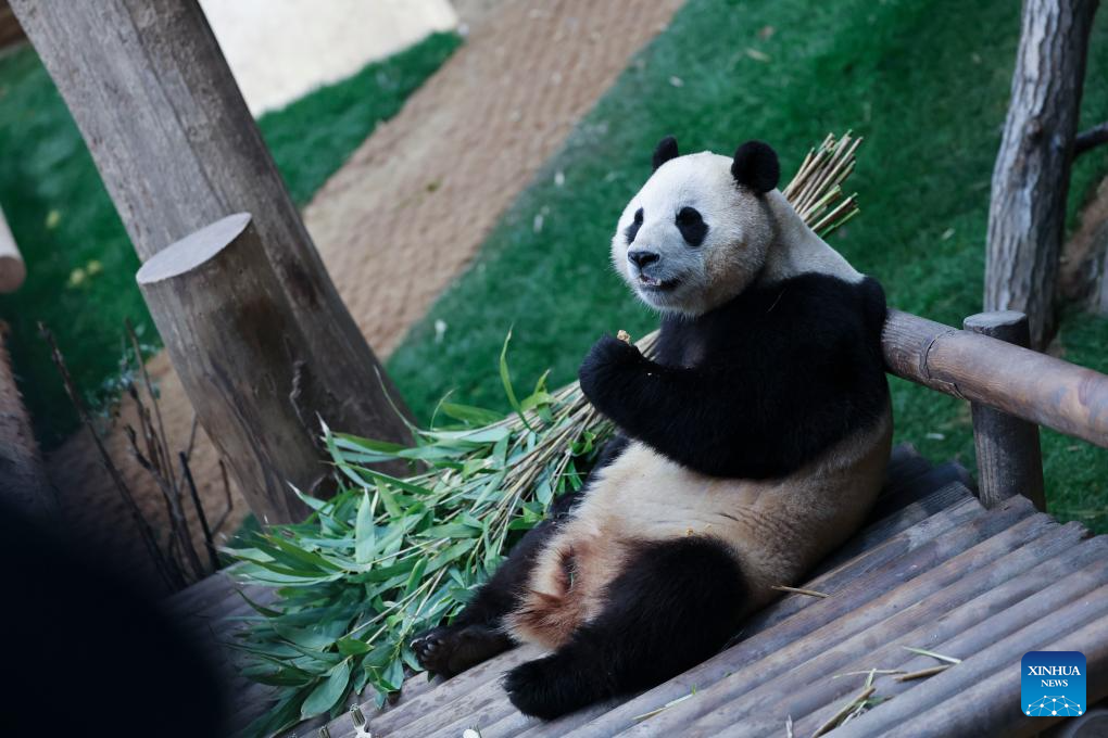This photo taken on Feb. 20, 2024 shows giant panda Fu Bao at Everland theme park in Yongin, South Korea. Giant panda Fu Bao is scheduled to return to China in April. (Xinhua/Yao Qilin)