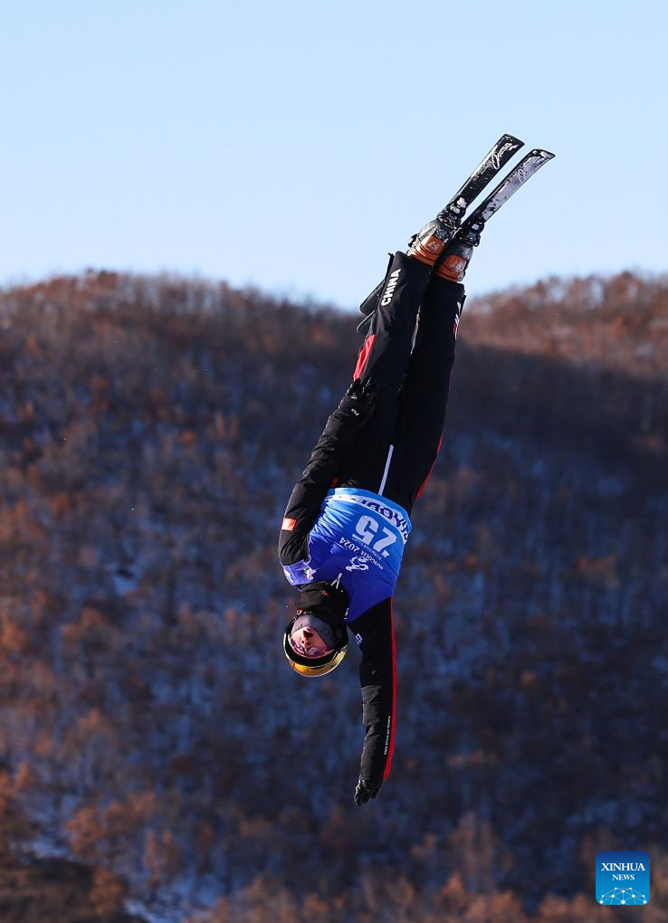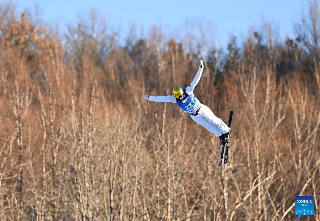 Jia Zongyang of Liaoning competes during the men's aerials competition at the 14th National Winter Games in Hulun Buir, north China's Inner Mongolia Autonomous Region, Feb. 21, 2024. (Xinhua/Yang Guanyu)