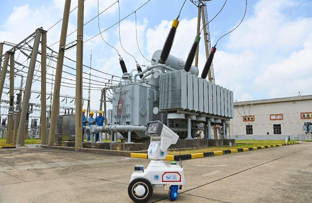 A 5G-enabled intelligent robot conducts routine inspection of electrical equipment at a 220kV substation in Dingyuan county, Chuzhou, east China's Anhui province. (People's Daily Online/Song Weixing)