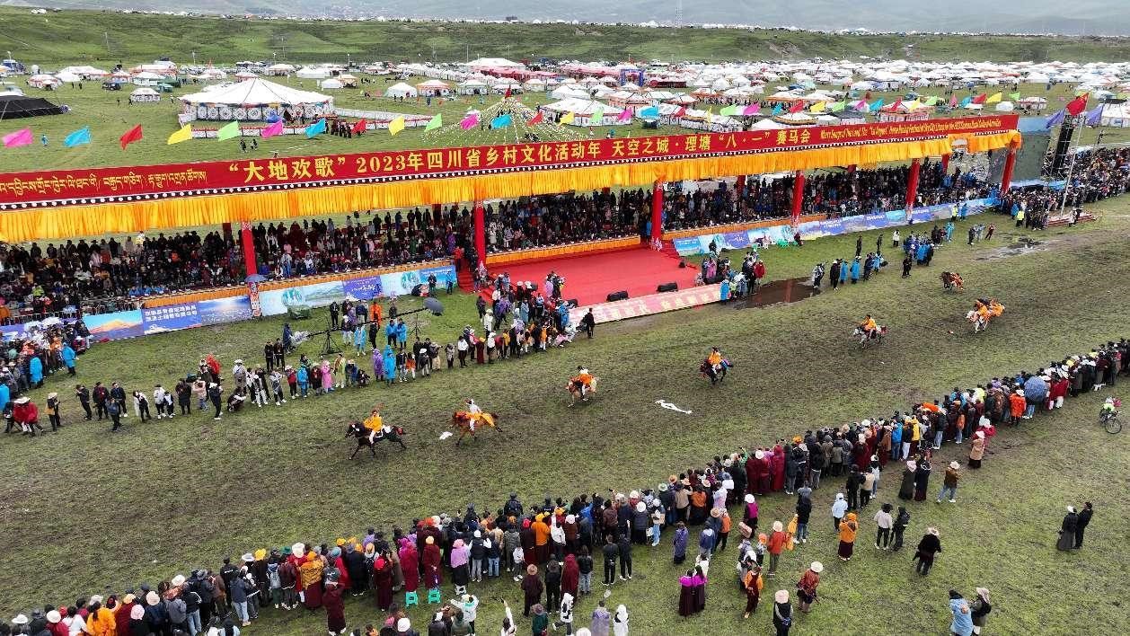 A horse racing event is held in Litang, Garze Tibetan autonomous prefecture, southwest China's Sichuan province, July 24, 2023. (People's Daily Online/Ye Qiangping)