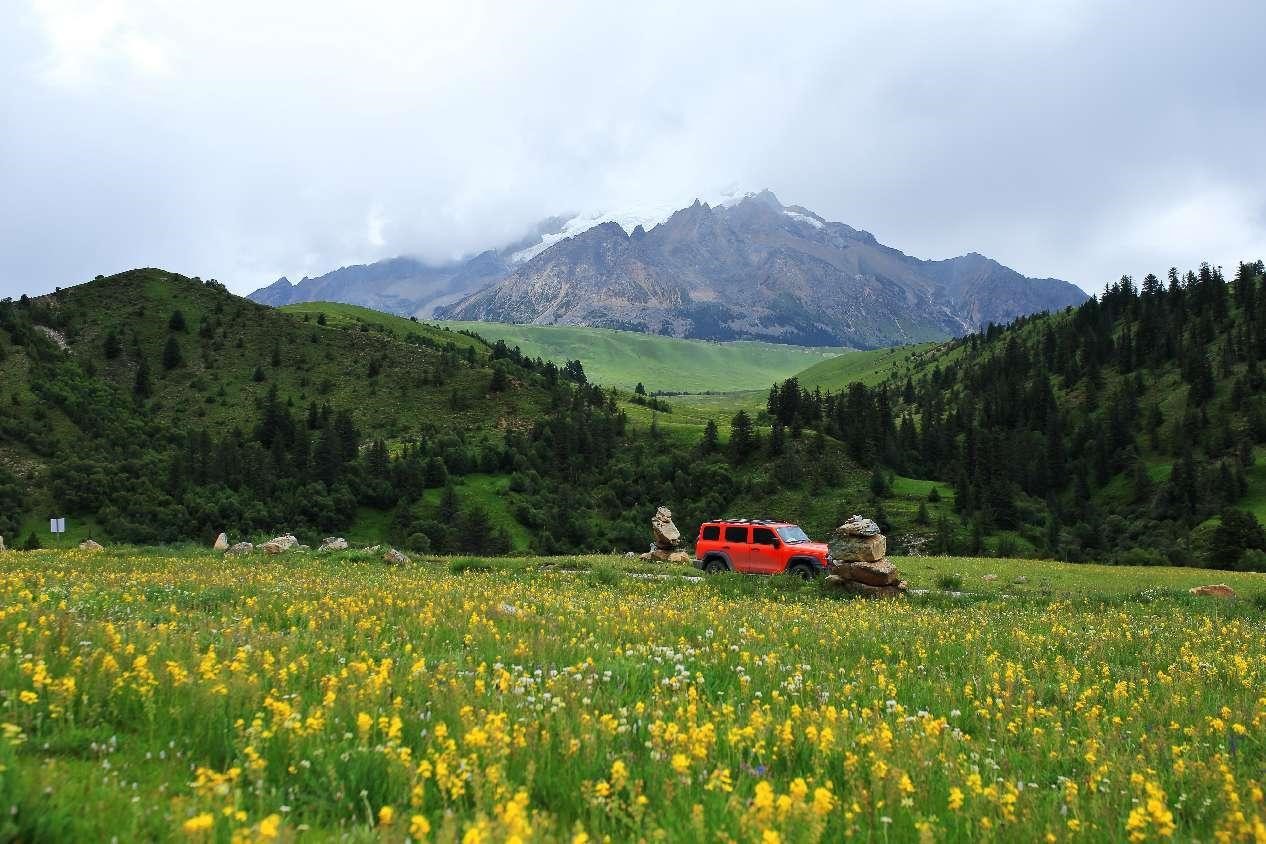 The Genyen scenic area, which features a 6,204-meter snow-covered peak that always shines brightly under the sunlight, is to the southwest of Litang county across a grassland.