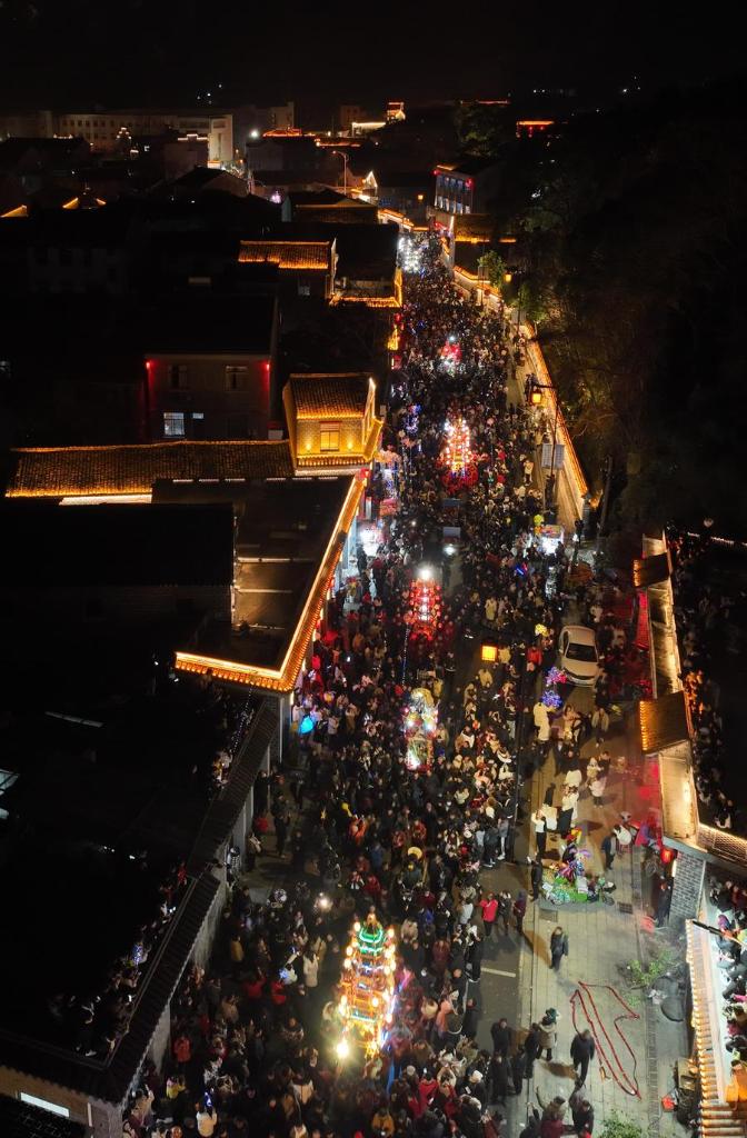 Villagers and tourists participate in the Qiantong Lantern Festival Parade in Qiantong Town, Ninghai County, east China's Zhejiang Province, Feb. 23, 2024. (Xinhua/Weng Xinyang)