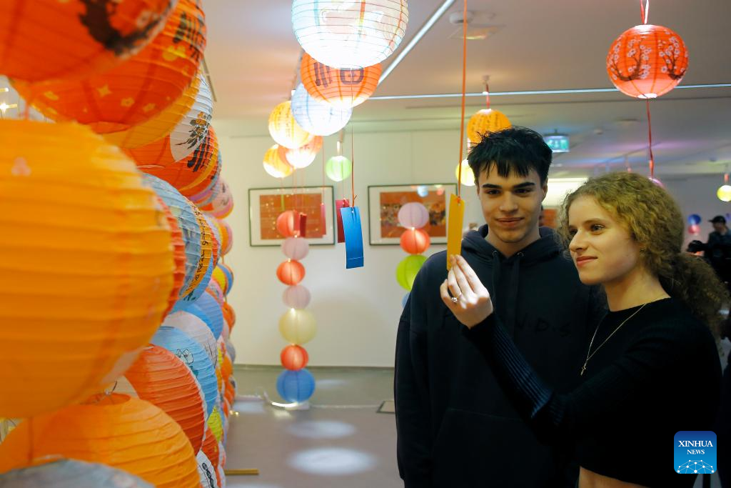 People attend an event celebrating the Lantern Festival at the Chinese Cultural Center in Bucharest, Romania, Feb. 23, 2024. (Photo by Cristian Cristel/Xinhua)