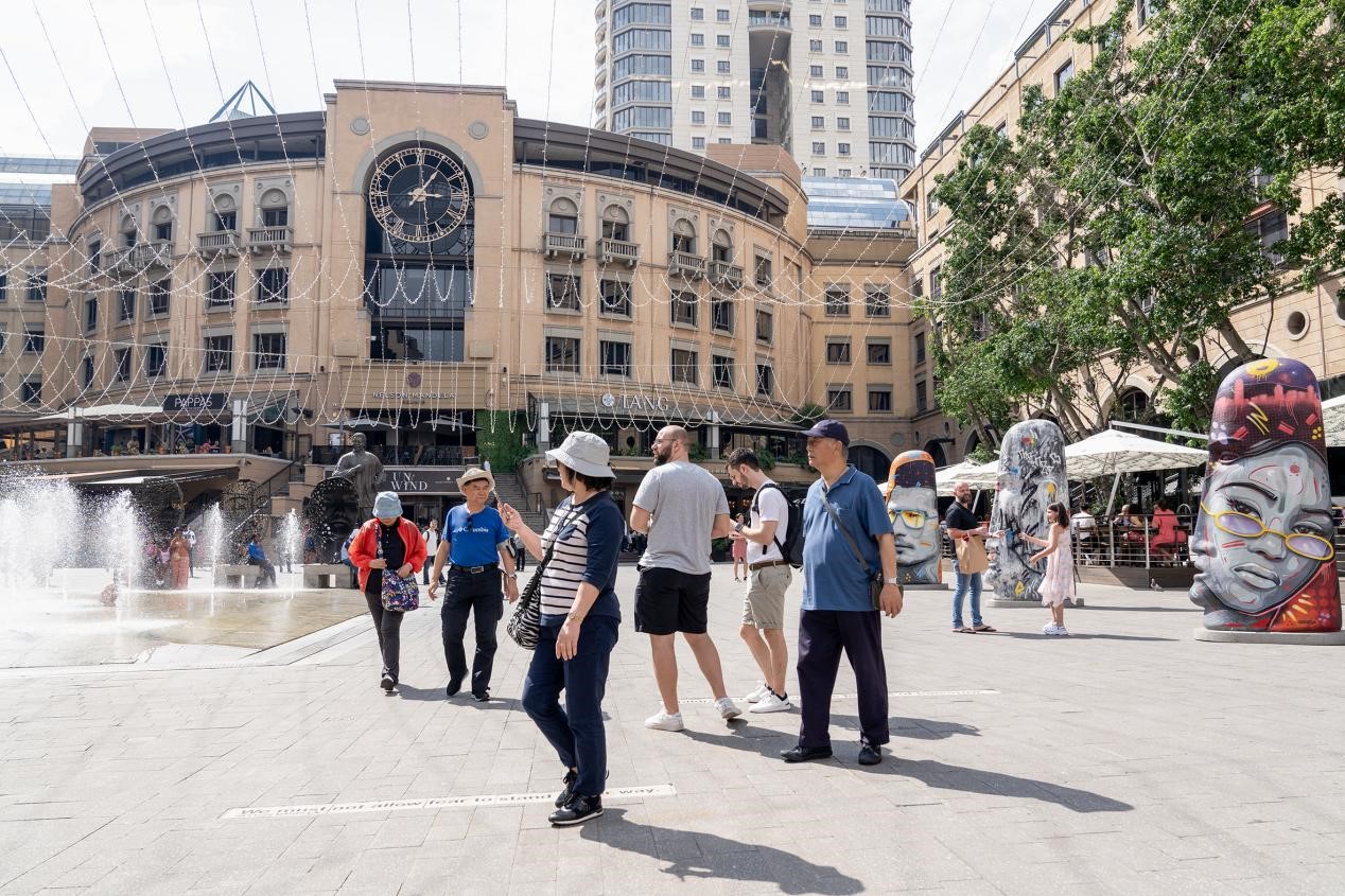 Chinese tourists visit the Nelson Mandela Square in Johannesburg, South Africa. (Photo/Shiraaz)