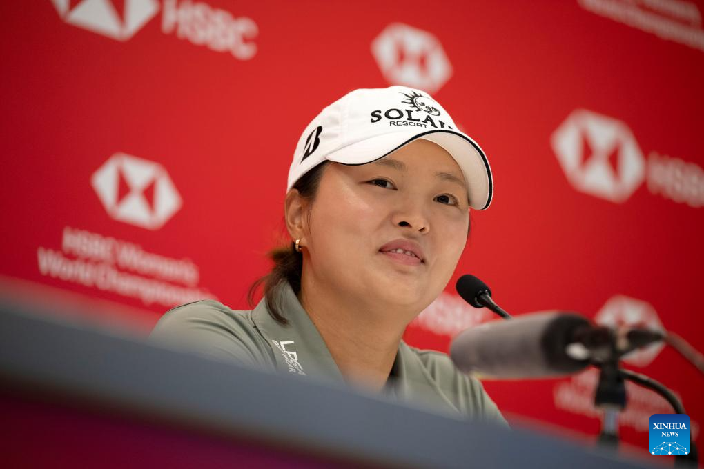 Yin Ruoning of China attends the HSBC Women's World Championship pre-tournament press conference held at the Singapore's Sentosa Golf Club on Feb. 27, 2024. (Photo by Then Chih Wey/Xinhua)