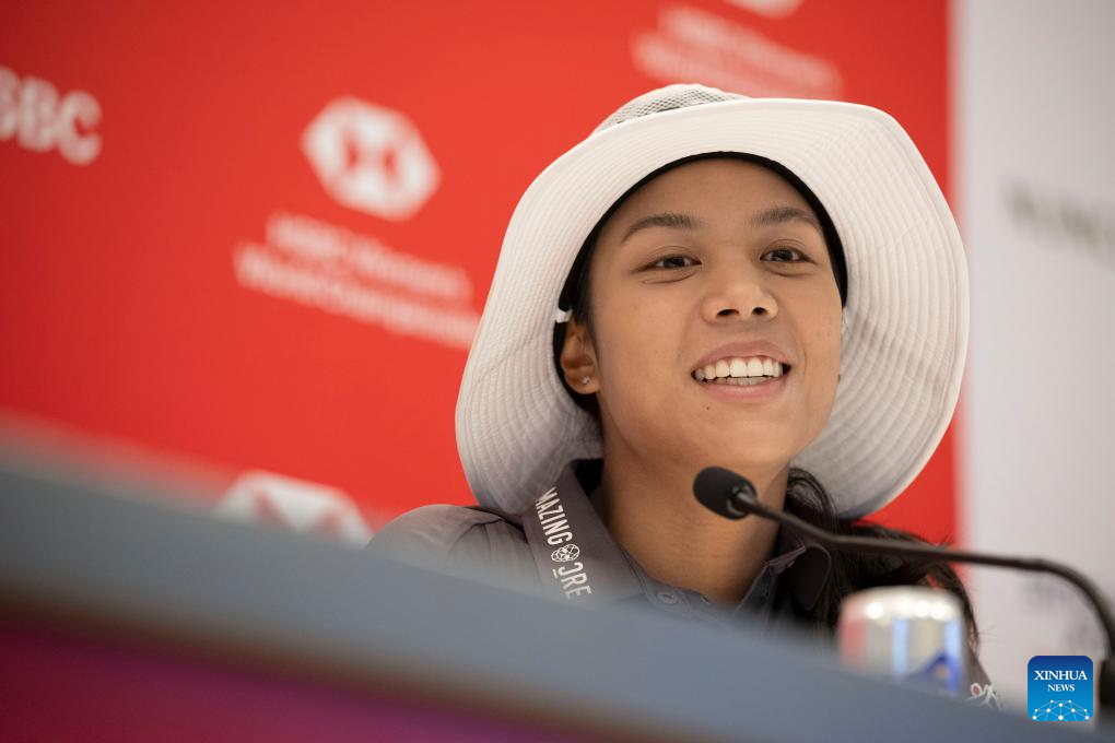 Patty Tavatanakit of Thailand attends the HSBC Women's World Championship pre-tournament press conference held at the Singapore's Sentosa Golf Club on Feb. 27, 2024. (Photo by Then Chih Wey/Xinhua)