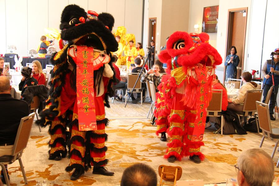 Muscatine High School students present a lion dance during an event to celebrate the Chinese New Year in Muscatine, Iowa, the United States, on Feb. 1, 2023. (Xinhua/Xu Jing)