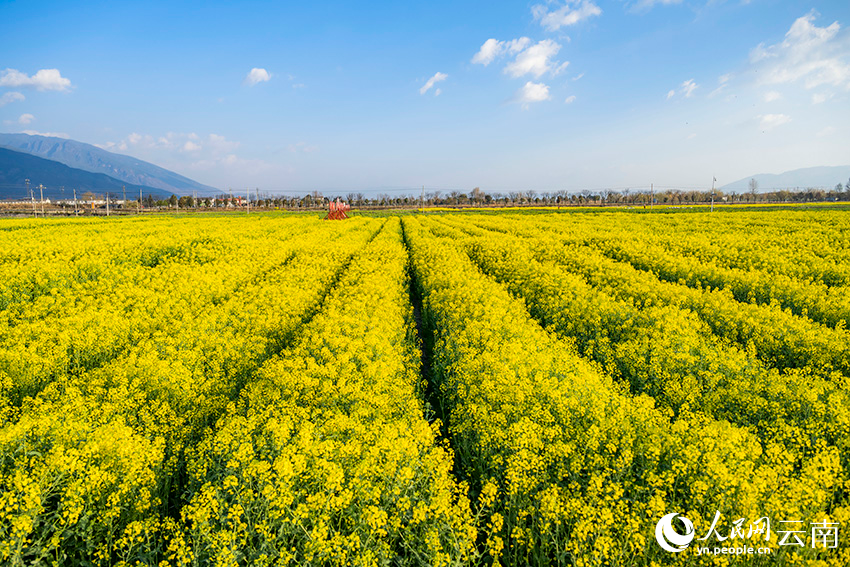 Rapeseed flowers are in full bloom by the shores of Erhai Lake in Dali, southwest China's Yunnan Province. (Photo/Wang Xuguang)