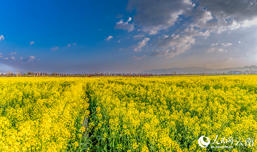 Rapeseed flowers are in full bloom by the shores of Erhai Lake in Dali, southwest China's Yunnan Province. (Photo/Wang Xuguang)