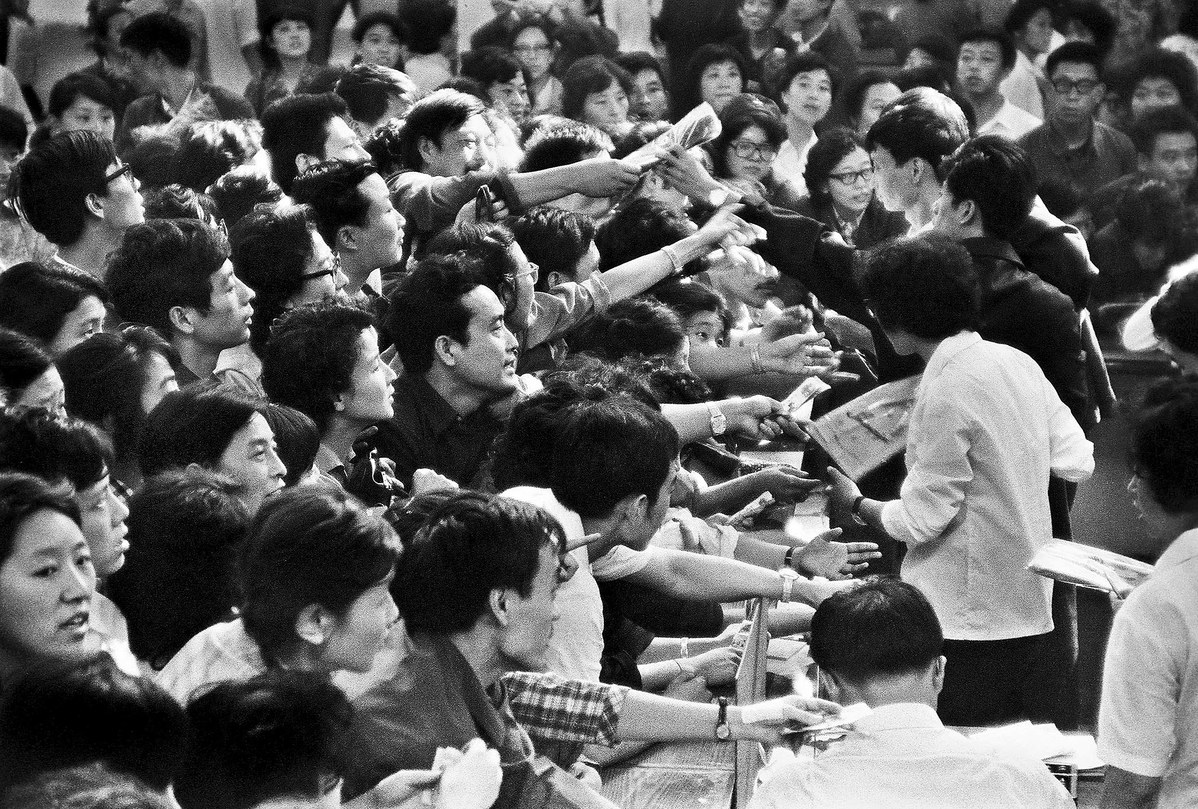 Customers scramble to buy clothes at the Beijing Exhibition Center in 1983. WANG WENLAN/CHINA DAILY