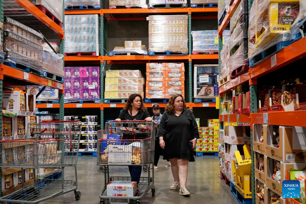 Customers select goods at a supermarket in Foster City, California, the United States, Feb. 28, 2024. The U.S. real gross domestic product (GDP) growth in the fourth quarter of 2023 was slightly revised down to an annual rate of 3.2 percent in the second estimate, the Commerce Department reported on Wednesday. (Photo by Li Jianguo/Xinhua)
