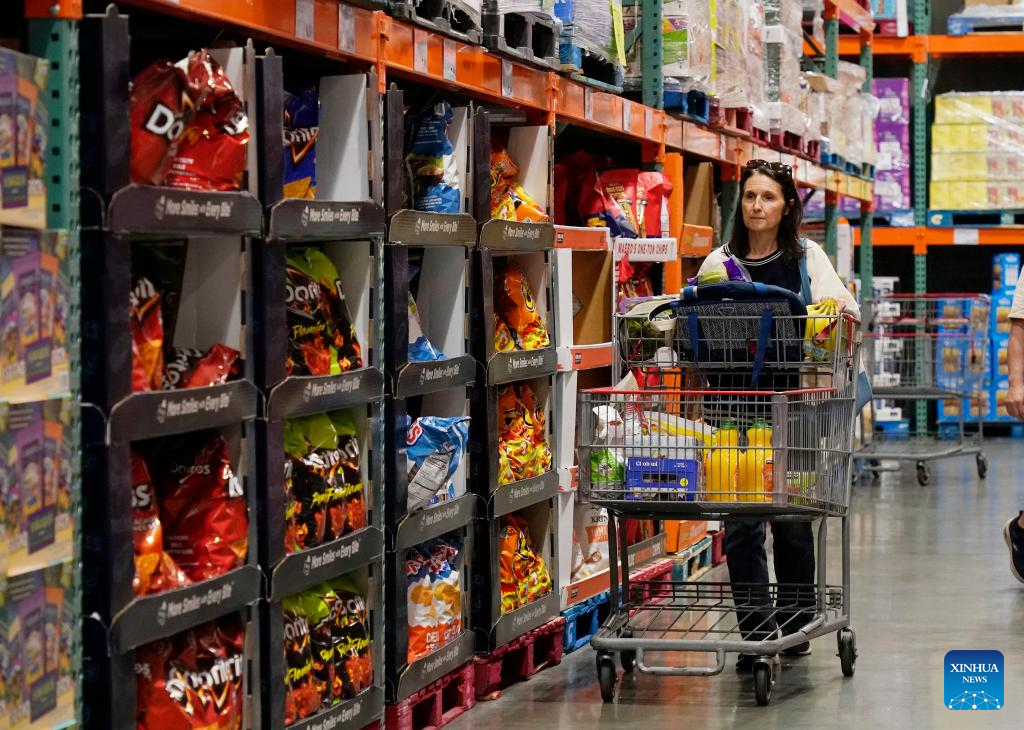 A customer selects goods at a supermarket in Foster City, California, the United States, Feb. 28, 2024. The U.S. real gross domestic product (GDP) growth in the fourth quarter of 2023 was slightly revised down to an annual rate of 3.2 percent in the second estimate, the Commerce Department reported on Wednesday. (Photo by Li Jianguo/Xinhua)
