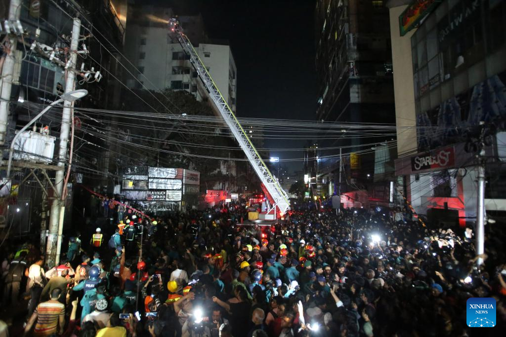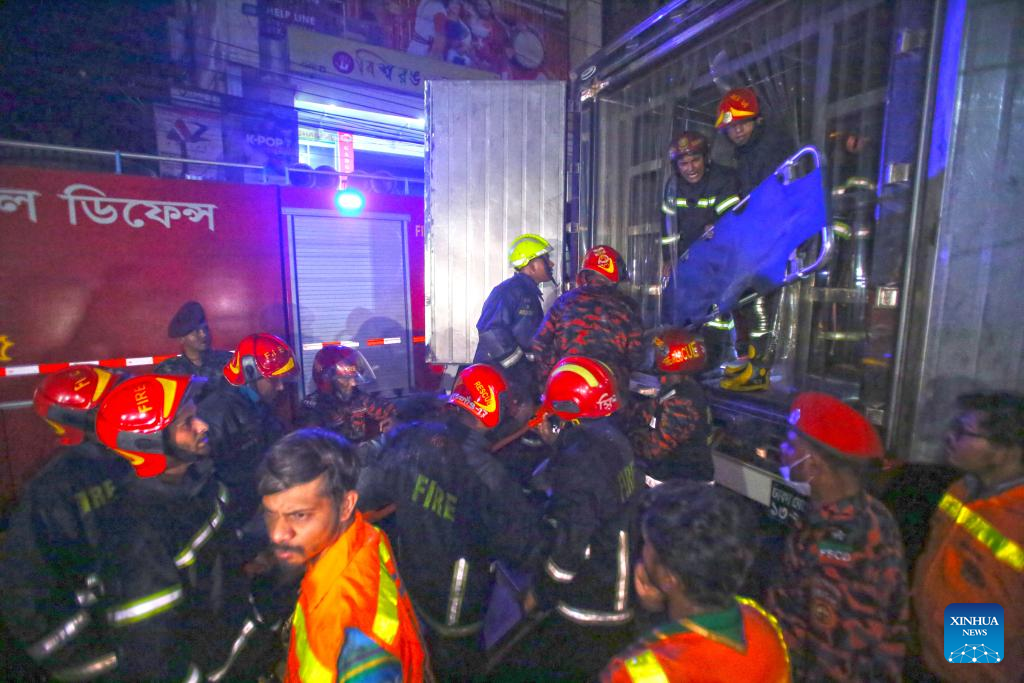 DHAKA, March 1 (Xinhua) -- At least 43 people were killed Thursday night after a devastating fire tore through a high-rise building in the Bangladeshi capital of Dhaka.