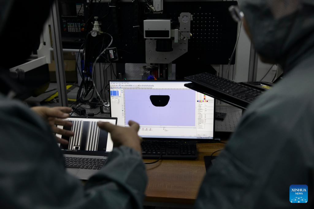 An ultra-fast laser micro-machining device engraves characters on a match head at a workshop of MICROMACH in Xi'an, northwest China's Shaanxi Province, Jan. 19, 2024. (Xinhua/Jin Liwang)