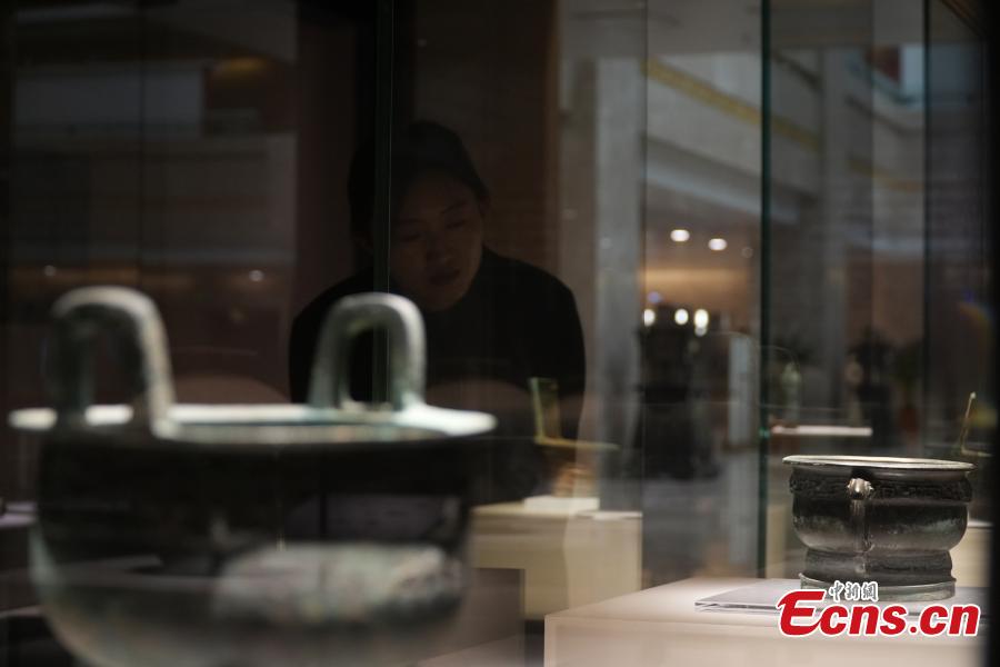 Cultural relics of Western Zhou Dynasty (1046 B.C.-771 B.C.) excavated from the Yaoheyuan ruins are on display at the Ningxia Museum in Ningxia Hui Autonomous Region, Feb. 29, 2024. (Photo: China News Service/Yang Di)