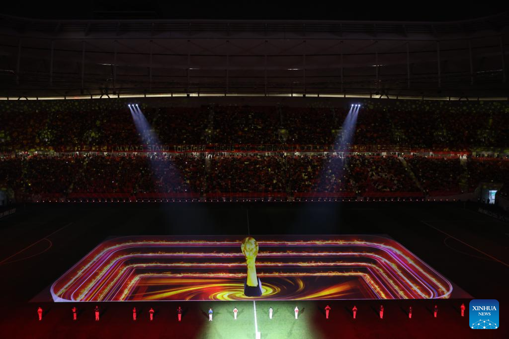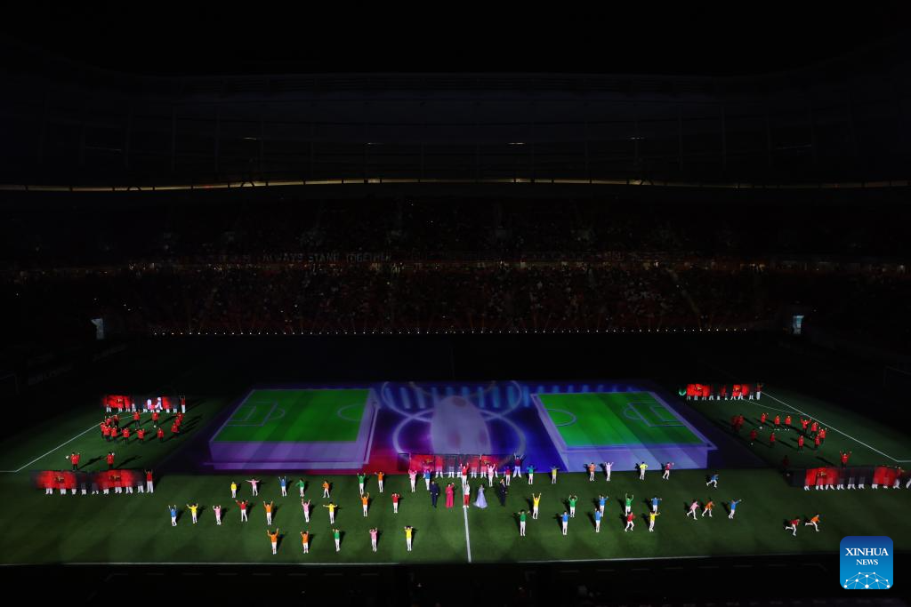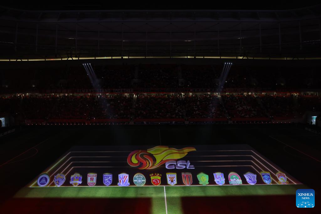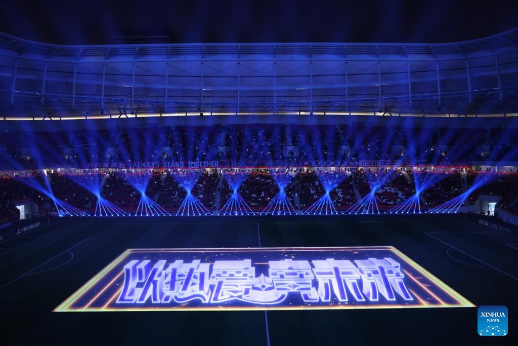 This photo taken on March 1, 2024 shows the opening ceremony of the 2024 season Chinese Football Association Super League (CSL) in Shanghai, east China, March 1, 2024. (Photo by Hai Shaer/Xinhua)